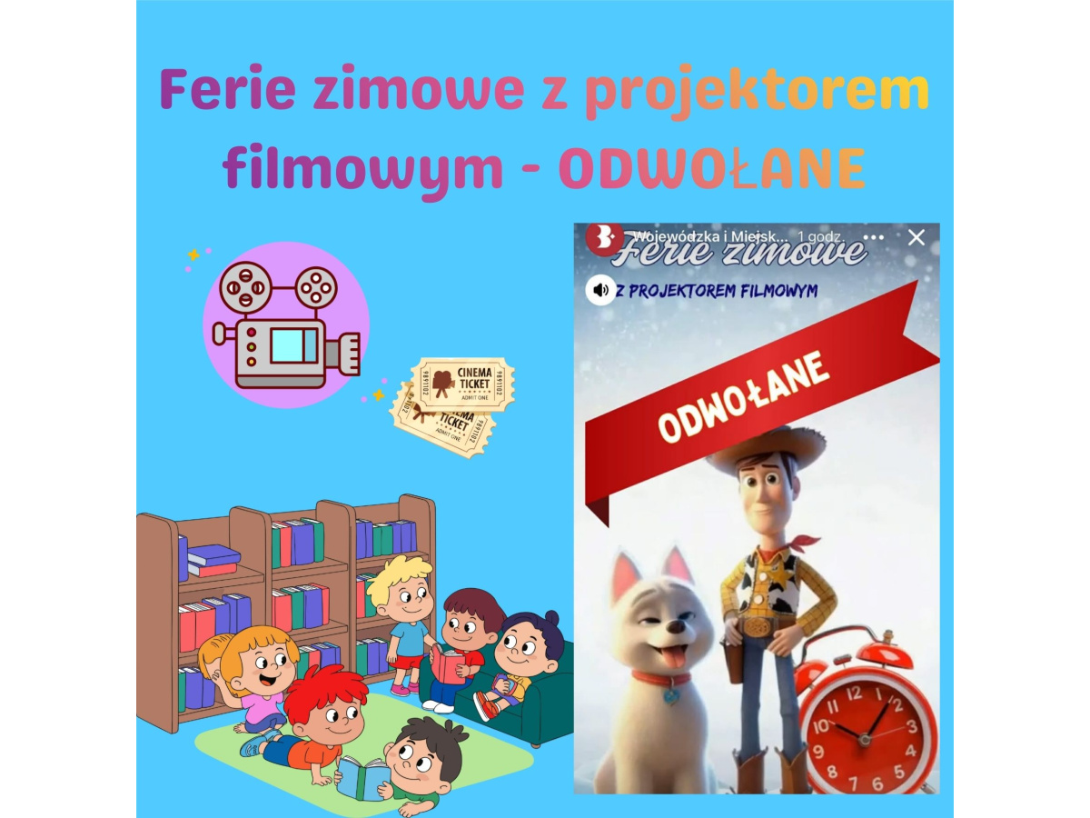 Informujemy, że wyjście dzieci z grupy VI "Tańczące Wiewiórki" do Biblioteki Głównej na FERIE ZIMOWE Z PROJEKTORM FILMOWYM - ZOSTAŁO ODWOŁANE.