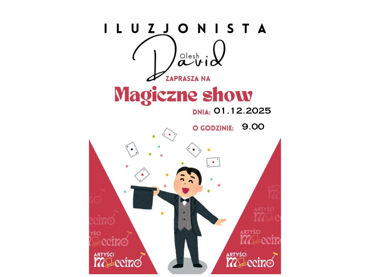 Drodzy Rodzice! Z radością informujemy, że 1 grudnia (poniedziałek) o godzinie 9.00 w naszym przedszkolu odbędzie się MAGICZNY POKAZ ILUZJI w wykonaniu Davida Olesh. Nasze sale wypełnią się radością, śmiechem i prawdziwą magią! Dzieci będą miały okazję podziwiać niesamowite sztuczki, które z pewnością pobudzą ich wyobraźnię i pozostawią niezapomniane wrażenia. Zapowiada się fantastyczna przygoda - serdecznie zapraszamy!
